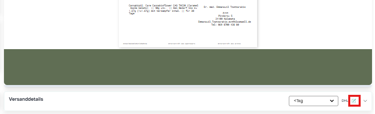 Anschließend müsst ihr unter der Rezeptvorschau bei den Versanddetails auf den Bearbeitungssymbol klicken: